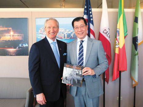 中國駐洛杉磯總領館郭少春總領事近日受邀訪問洛杉磯港,並與洛杉磯港執行董事賽羅卡、副執行董事夏爾馬一同考察洛杉磯港碼頭。
