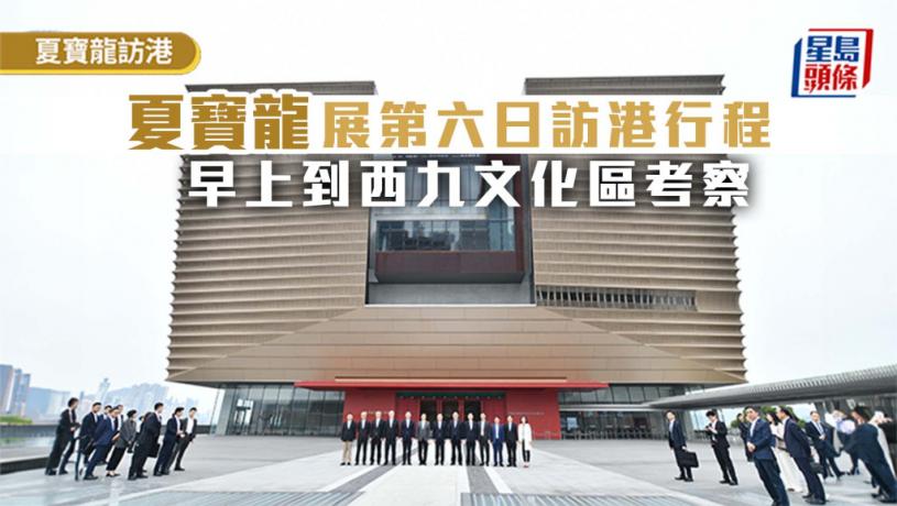 中央港澳工作辦公室主任、國務院港澳事務辦公室主任夏寶龍來港考察調研,今日(27日)開展第6日行程。上午約9點10分,港澳辦主任夏寶龍、副主任農融等一行在行政長官李家超、中聯辦主任鄭雁雄、文體旅局局長楊潤雄、西九文化管理局行政總裁馮程淑儀及董事局主席唐英年的陪同下,進入香港故宮文化博物館參觀。一行人經故宮底層扶梯走上平台,夏寶龍向傳媒揮手示意,在故宮正門口影大合照後進入參觀。
