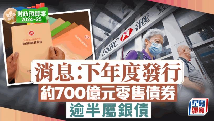 財政司司長陳茂波明日(28日)將發表預算案,預料財政赤字將逾千億元。消息指,政府下個財政年度會繼續發行零售債券,共計約700億元,當中大半屬銀色債券,其餘則為綠色及基建債券。