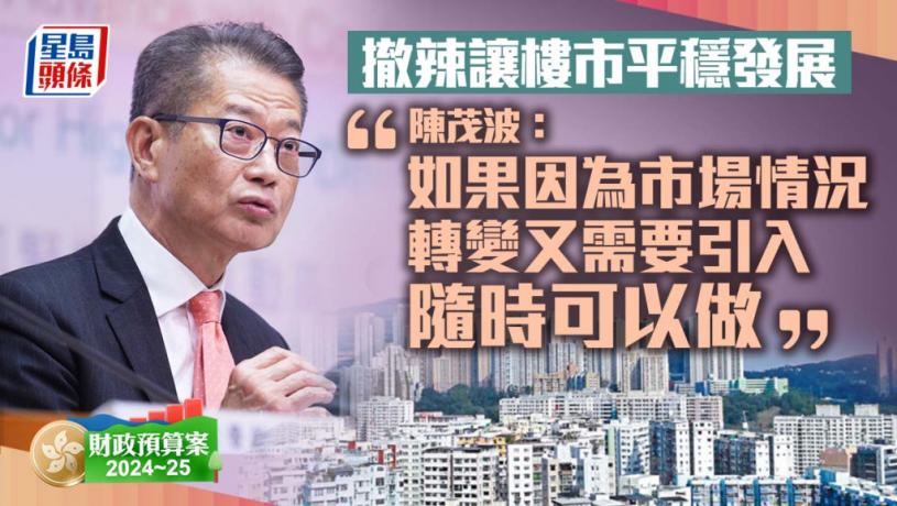 他強調,政府樂見市場平穩健康發展,全面撤辣的信息非常清楚。被問到是否擔心樓價再次大升,進一步脫離市民負擔能力。陳茂波回應指:「要是因為市場情況轉變又需要引入,隨時可以做。」但在正常情況下,就隨市場自由發展。