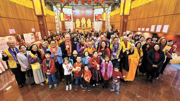 芝加哥佛光山於2月10日大年初一舉辦「新春文化Open House」活動。廣邀不同文化背景的鄰居、信眾,近250位中西人士,一起到道場走春、燒年香、賀新春;觀賞「緬懷開山祖師星雲大師 雲水三千特展」,並以全英文唱誦祈福,期盼新的一年,人人「雲水自在.祥和歡喜」。