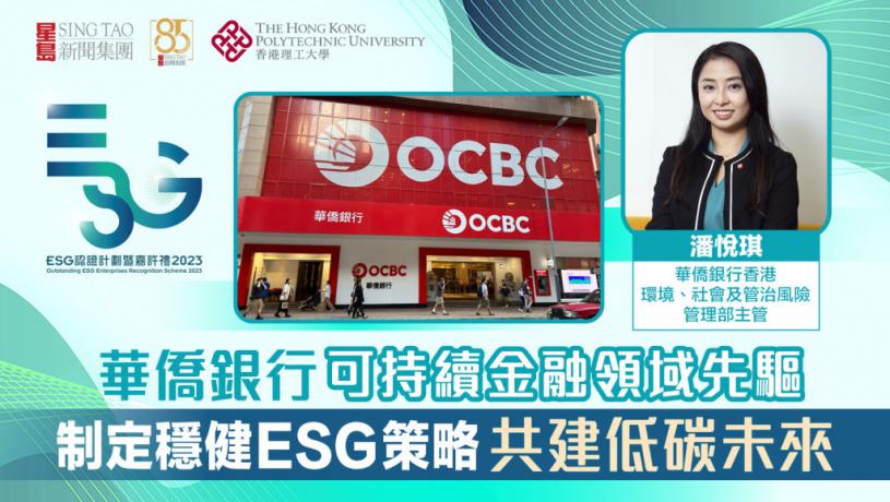來自新加坡的華僑銀行是東南亞第二大金融服務集團,亦是世界上最高評價的銀行之一,近年致力透過提供創新金融服務,幫助實現個人和企業客戶當前和未來的需要,並且為集團訂下清晰的ESG願景,最近獲頒由星島新聞集團及香港理工大學會計及金融學院合辦的「ESG認證計劃暨嘉許禮2023」之「ESG卓越企業管治專業獎」,足證集團在ESG方面的努力及成就備受認同。