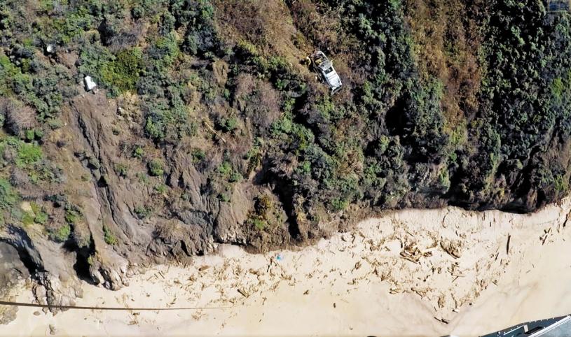 據KRON電視台報道,加州公路巡警海岸分部空中行動小組周二(27日)在崎嶇的海岸線進行搜索,發現這名男子在颶風角(Hurricane Point)下方揮舞臨時做成的旗幟。他的汽車墜落至400呎下方的海灘。