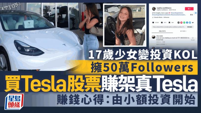 越來越多的年輕人開始關注自己的財務狀況,追求財務自由。美國有金融機構調查顯示,有四份之一年齡介乎13至17歲的青少年已開始涉獵投資。其中,一名少女自稱早在14歲已進入股壇,成功有斬獲後更購入一架Telsa Model 3代步,更在社交平台傳授投資基礎知識,下一步計劃投資物業收租。