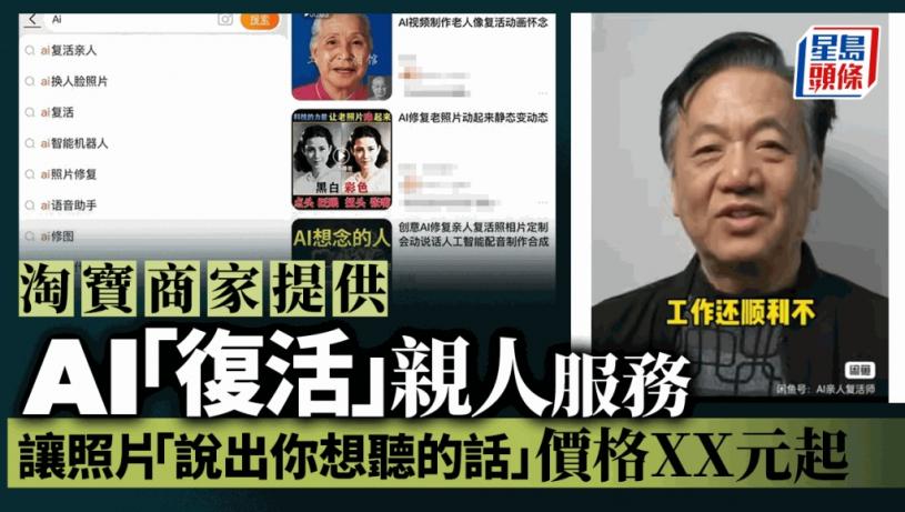 隨著生成式AI數字技術快速發展,用AI「復活」親人成為可能。內地電商平台近期湧現「AI復活親人」或是讓老照片動起來,最低只要10元(人民幣,下同)。
