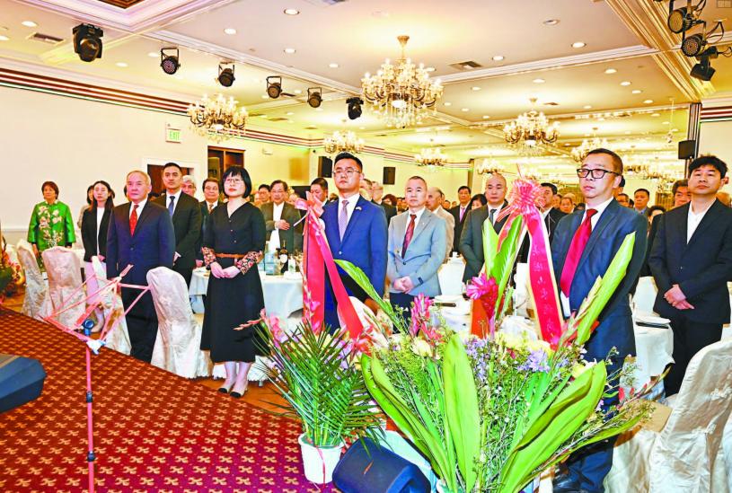 (僑社記者馬紅兵報導 )2月24日晚上六時,全美福建工商總會於密佈爾市太湖海鮮酒家舉行成立十週年暨春節聯歡慶會。中領館副總領事鄒永紅、新任副總領事宋國選、領事姚瑤;舊金山灣區中國統一促進會副理事長雷華欽;第一副會長長黃楚文、第二副會長麥永康;統促論壇社長關信民;陽和總會館主席陳國慶;美洲萃勝工商總會總理劉源凱、副總理何偉明;英端工商總會總理李顯輝;全美和統會會長鄒志強;福建人在灣區聯誼會會長楊寶海、副會長王小惠、江華超;北加州廣府人聯誼會創會會長張冠榮等嘉賓蒞臨,共襄盛會。全美福建工商總會創會會長楊長城;會長黃禎祥、副會長鄭家暾、楊寶海、繆志遠;顧問楊長城、劉磊、祝良、陳鎮鋒、杜子文、劉琦暨西雅圖支會、波特蘭支會首長出席聯歡。