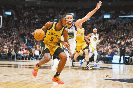 客場對陣速龍的比賽中,庫里奮力阻止對手進攻。路透社