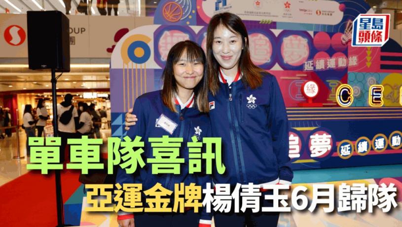 香港時間周六,兩位杭州亞運獎牌得主李思穎及楊倩玉應邀出席港協暨奧委會主辦的「無憂追夢、延續運動緣」運動嘉年華啟動禮,曾想過退役的亞運公路單車金牌得主楊倩玉帶來好消息,她將於6月初「復出」比賽,參加哈薩克亞洲公路單車錦標賽的男、女子混合團體賽,在旁的思穎希望阿玉盡快歸隊,一齊在場地單車賽場再合作。