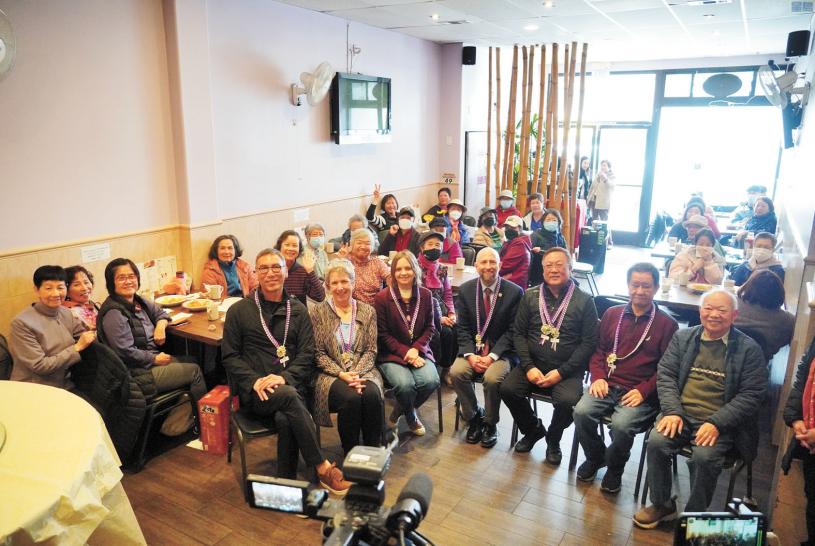 上周四下午,在日落區19街的東南風(S&E)餐廳,安老自助處行政總裁鍾月娟、董事Dickson Sum、三藩市殘障人士及長者服務部社區服務副主任Cindy Kauffman 、註冊營養師Leah Walton、市參事殷嘉立、已退休的東南風前東主Richard Choi、新東主Paul Chu and Eric Lei及長者數十人,出席新聞發布會。