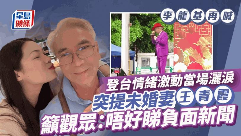 73歲李龍基因年小36歲的未婚妻王青霞(Chris Wong)涉造假引發軒然大波,王青霞上月20日因被控逾期居留、使用虛假文書等6罪,現正還押於大欖女懲教所看管,李龍基連日風雨不改一大清早探望對方,甚至聲稱已取消原定3月的工作,惟翌日即被踢爆乘勢於3月中推出個唱晚宴套餐,盛惠4,000元一圍全包宴,原來前日(3日)下午亦在黃大仙一個活動擔任表演嘉賓,席間更一度情緒激動灑淚當場!