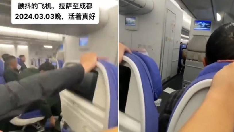 西藏航空一班由拉薩到成都的航班,於周日晚(3日)遇上強烈氣流,飛機出現猛烈顛簸如坐過山車,嚇得乘客尖叫、空姐聲音也發抖。飛機順利降落後,飽受驚慌的乘客鼓掌歡呼:「活著真好」。