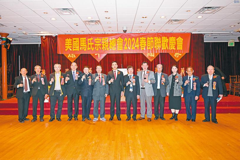 中領館代總領事宋國選致詞,他表示很高興應邀出席馬氏宗親總會春節聯歡慶會,我謹代表中總館向馬氏宗親及在座嘉賓致以誠摯的問候。馬氏宗親總會是舊金山華埠知名姓氏宗親團體,人才眾多,會務興盛,長期以來致力於謀求宗親權益、繁榮僑社經濟、弘揚中華文化、增進中美友好,成績突出,有目共睹,謹向大家表示敬意和感謝!剛剛閉幕的全國「兩會」,讓世界感受到中國高質量發展的澎海春潮。不久前,習近平主席會見美國工商果和戰略學術界代表,他指出,中國經濟是健康、可持續的。中國將持續推動高質量發展,持續推進中國式現代化。中國的改革不會停頓,開放不會止步,中國將持續建設市場化、法洽化、國際化的一流營商環境,為包括美國企業在內的各國企業提供更廣闊的發展空間。今年是中美建交 45周年。45 年來,中美關系歷經風雨,總體向前發展。中美關系是世界上最重要的雙邊關系之一。只要雙方都把對方視為伙伴,相互尊重、和平共處、合作共贏,中美關系就會好起來。我們期待廣大僑胞和各界朋友積極發揮橋樑紐帶作用,增進兩國各界人士多來往、多交流,不斷積累共識、增進信任、排除千擾、深化合作,為中美友好添磚加瓦。最後,祝願馬氏宗親總會會務昌隆,蒸蒸日上。祝各位鄉親龍年大吉,龍馬精神,闔家幸福,萬事如意。