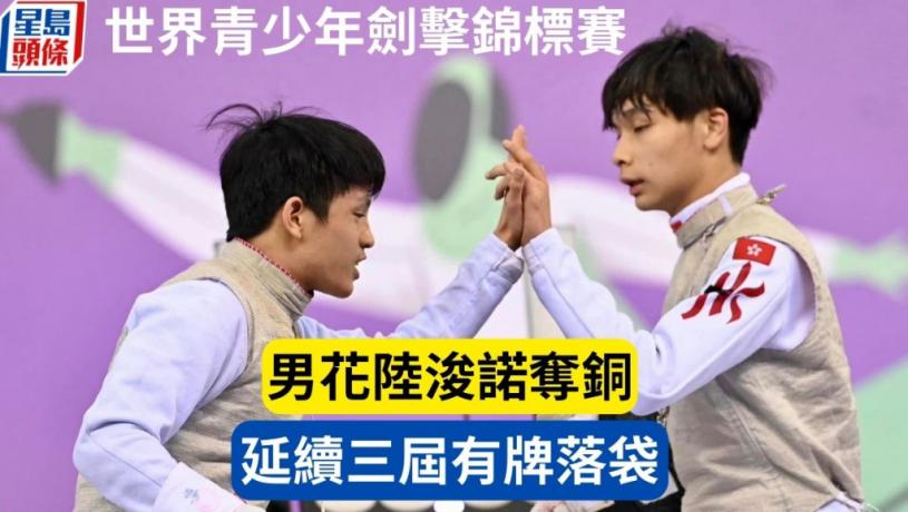 繼師兄張家朗及鄭鐵男後,香港男子花劍代表、年僅16歲的陸浚諾周六在沙特阿拉伯舉行的世界青少年劍擊錦標賽的男花少年組個人賽,躋身4強,在一度領先7:2下反負國家隊Lyu Weiqiao12:15,在不設銅牌戰下為香港奪得今屆首面銅牌,這亦是男子花劍歷來第3面世青獎牌。
