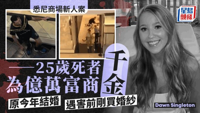 據報道,悲劇中一名受害者,是年僅25歲女子道恩·辛格爾頓(Dawn Singleton)。她是澳洲最著名的商人之一約翰·辛格爾頓(John Singleton)的女兒。遇害時,道恩正在商場內一個高級精品專賣店購物。據悉,道恩正準備在今年結婚,被斬死前幾天才購買了婚紗。