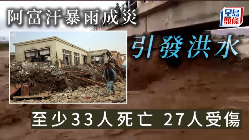 阿富汗暴雨成災,國內多個省份出現洪水,至今造成至少33人死亡,約27人受傷。當局警告暴雨將在未來數日持續。