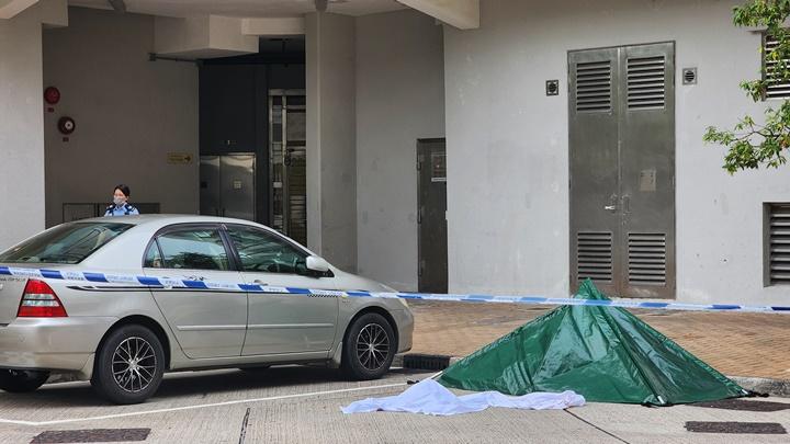 今(15日)午4時許,一名84歲老翁從上水祥龍圍邨景祥樓高處躍下,飛落大廈對開空地頭破血流,救護員接報到場,證實事主已明顯死亡,蓋上遮屍帳篷,據悉,死者疑不堪病患折磨輕生,並無可疑。