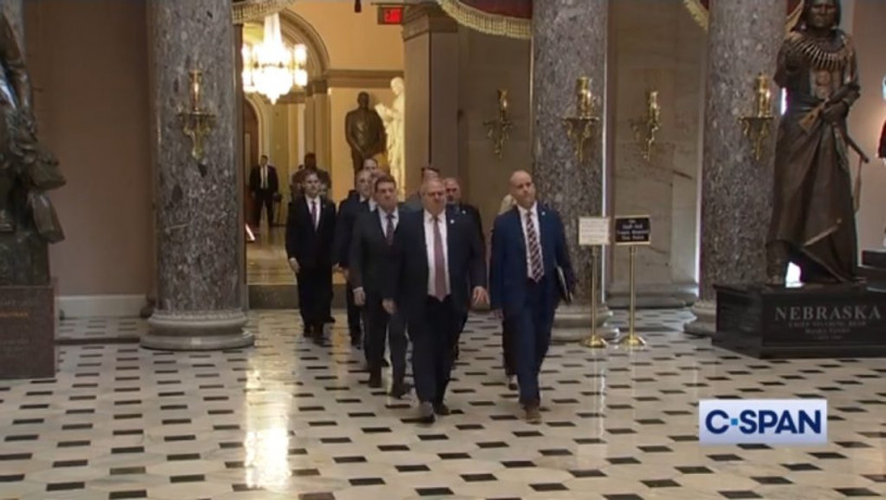眾議院彈劾經理將法律文件送往聯邦參議院。直播截屏