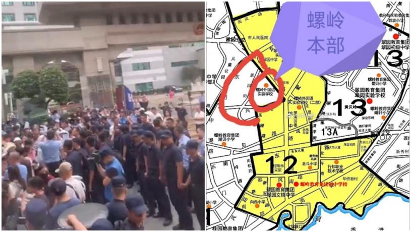 深圳市羅湖區今天有近百名家長請願,抗議學區重劃。當局調派大批警察和防暴隊戒備,傳有多名家長被強行帶走。