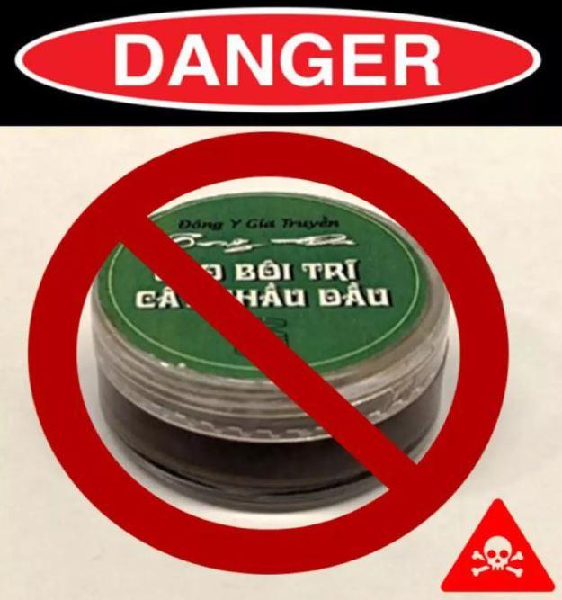 衛生官員表示,該種越南產品包裝為圓形綠色小容器罐,上面用越南文寫著蓖麻油痔瘡萃取物,樣本顯示該款藥膏內含有約4%的鉛,達到「高度危險鉛含量」。