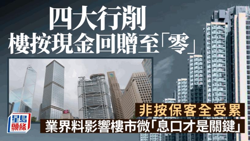 美國或推遲減息,銀行資金成本回落似無望,大型銀行在樓市撤辣後轉旺之際,再度出手削按揭現金回贈。據悉,本港四大行基本上一律取消非按揭保險的新做按揭、轉按及加按此類申請的按揭回贈。今次取消回贈由恒生(011)於上周五帶頭,滙豐跟隨,中銀香港(2388)及渣打香港今周接力。市場人士指四大行將非按保等按揭回贈「歸零」,情況極為罕見,料或有中小型銀行仿效,但相信無礙市民入市意欲。