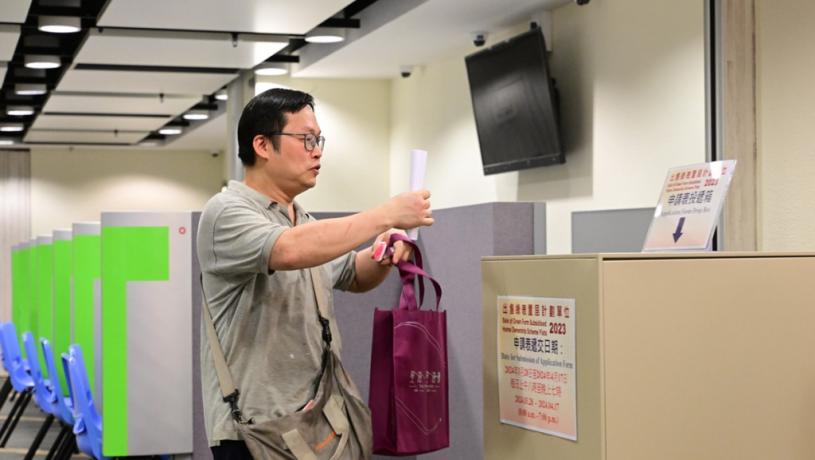 申請截止後,職員隨即收走表格收集箱。陳極彰攝