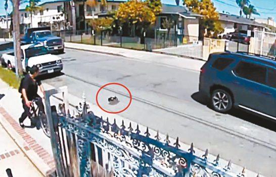 根據一段令人不安的監視器畫面,這名27歲男子迪亞茲(Rogelio Diaz)在上週三(4月10日)將一隻名叫Chiquita的狗殘忍地踢到其主人家外的街道上。然後男子停下自行車、戴上手套,又將狗移到人行道上,並反覆用自行車碾壓Chiquita。