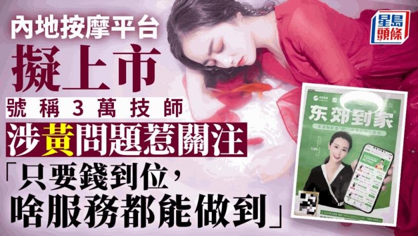 內地近年興起上門經濟,當中包括上門按摩,相關平台猶如雨後春筍般湧現,其中一間「東郊到家」號稱擁有多達3萬名技師團隊和廣泛市場覆蓋,公開表示有意上市,目前估值達35億元(人民幣下同);不過,隨着行業迅速擴張,涉黃等監管問題亦引發社會廣泛關注。