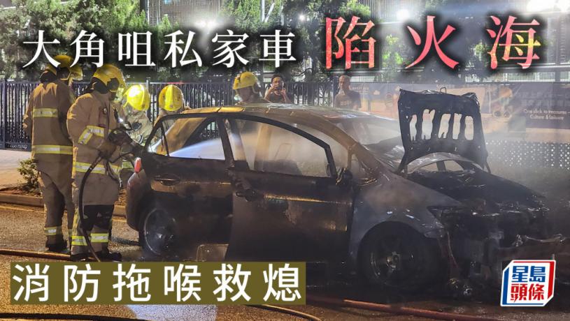 大角咀一部私家車,今日(18日)晚上8時許,停泊在海庭道2號櫻桃街公園對開時,司機發現其座駕車頭冒煙,遂報警求助。消防趕至時車輛已陷入火海,消防拉一喉一煙帽隊將火救熄。火警後車輛已被燒剩支架,起火原因仍待調查。