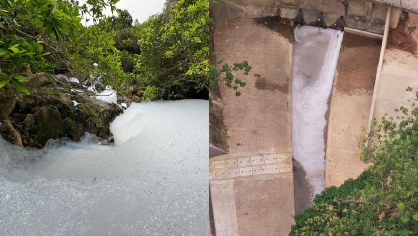 西貢區議員方國珊今日(18日)亦在社交網站提到事件,指接獲峻瀅居民通知,指後山一帶仍有大量白色泡沫,有些甚至已經飄到行人路,居民擔心影響健康及周邊生態,方國珊促請相關部門徹查。