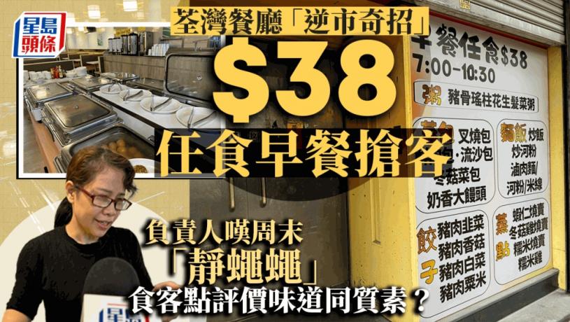 本港餐飲業界面臨結業潮,不少食肆為「絕地求生」,出動奇招求翻身。近日社交網站流傳有餐廳推出「$38任食早餐」及「$58任食午餐」作招徠吸客,《星島頭條》記者親身前往實試,不少客人直言是看到在社交平台熱傳後特意來一試,惟認為款式不算多,質素只是尚可。亦有食客稱,「38蚊唔會預期有幾好食,但任食任飲都無乜好投訴」。