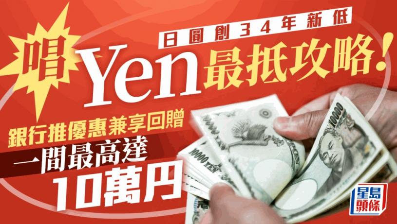 日圓匯率持續低走,每百日圓兌港元一度低見5.04,創1990年以來34年,目前則在5.065至5.095之間徘徊。不少港人都趁匯率優勢兌換日幣,為赴日旅行作準備。本港多家銀行也因應港人報復式外遊,推出外幣兌換優惠,包括現金獎賞、抽獎活動或是以銀行成本價買賣外幣可享高息外幣定存等,到外地消費自然感覺更划算!《星島頭條》整合銀行最新外幣兌換優惠。