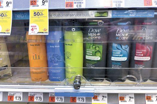為了防止偷竊,店家將商品鎖在玻璃櫃內。美聯社
