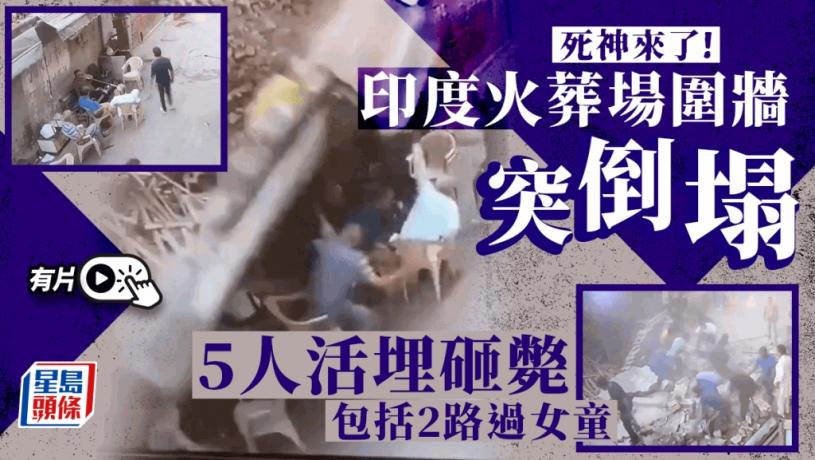 近日印度瘋傳一段短片,不知道還以為是經典驚悚片《死神來了》的預告片,看得人不寒而慄。在一條小巷內,國營火葬場的圍牆突然全幅傾塌,巨大的石塊如下雨般砸向坐在牆下和路過的民眾,其中五人被活活砸斃,包括2名路過的女童也不幸枉死。