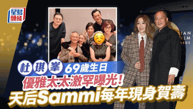 本月22日是金像導演杜琪峯(杜Sir)的69歲生日,好友鄭秀文(Sammi)和古天樂幾乎年年都從不缺席,今日(24日)凌晨鄭秀文於社交平台貼出大合照,久未公開露面的一代女神鍾楚紅(紅姑)都有出席,杜太黃寶玲(Paulina)更是鮮有曝光!