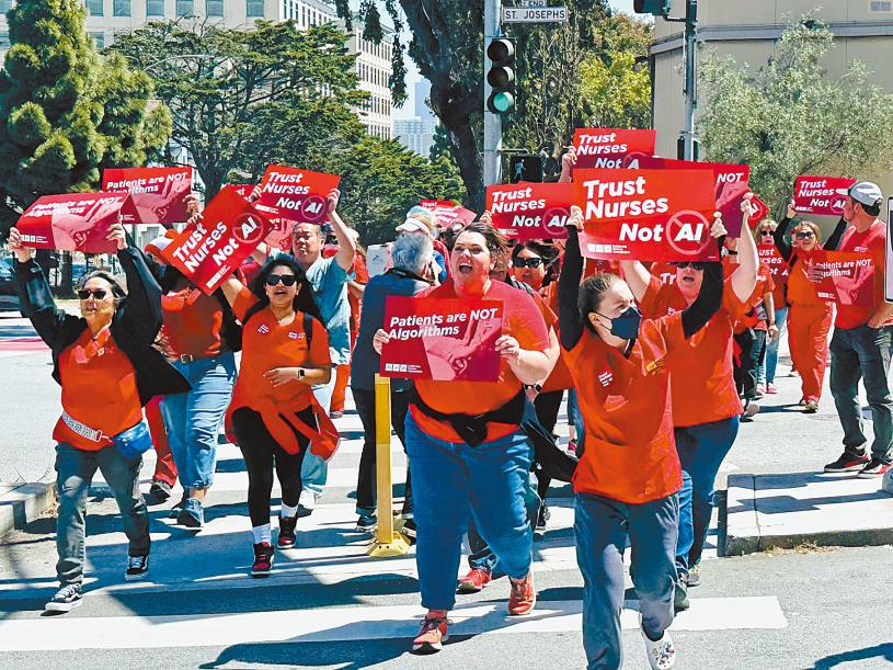 加州護理師協會(CNA)召集數百名來自加州各地的註冊護理師,於周一中午12時在Geary大道2425號的凱薩醫療中心(Kaiser Permanente)舉行集會,強調他們在人工智能(AI)技術下對患者安全的擔憂,以及對醫院急於實施未經測試和不受監管的人工智能的不滿。市參事潘正義(Dean Preston)和市參事陳詩敏(Connie Chan)均到場支持。