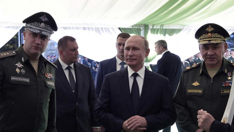 2018年,國防部副部長伊萬諾夫(Timur Ivanov,左)向普京(中)和紹伊古(右)一同出席活動。 路透社