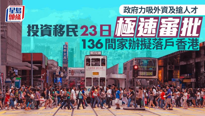 港府力吸外資及「搶人才」,去年公布重啟「新資本投資者入境計劃」(CIES,俗稱投資移民),有業內人士指今年3月1日開始接受申請後,有個案在23日後便成功批核,形容審批時間「極速」;同時,港府亦積極吸引外資進駐香港,財經事務及庫務局局長許正宇表示,正準備和決定在港設立或擴展業務的家族辦公室總數達136間,又指投資推廣署的家族辦公室團隊,接獲超過650個查詢。