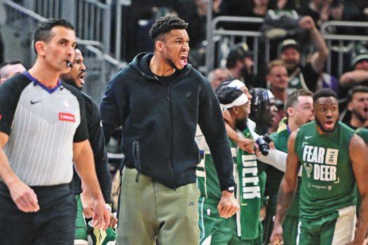 雖然不能出場,但是字母哥全程參與到雄鹿的比賽中,他穿著便裝坐在場邊為隊友加油吶喊。比賽進行到第3節,貝弗利在一個進攻回合中被對方推到地上,字母哥第一時間將他拉起。在被反超之後,雄鹿請求暫停,字母哥更是在場下充當教練指導隊友,看得出對場上形勢非常著急,不停為隊友們講解和鼓勁。