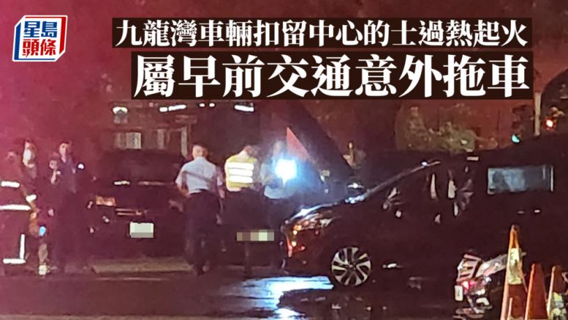 九龍灣發生火警。今日(25日)2時許,警方接獲一名的士司機報案,指常怡道23號九龍灣車輛扣留及驗車中心內,一輛因早前發生交通意外的的士,被拖至上址後,突然冒燒起火。消防人員趕抵現場,其後將火救熄。經初步調查,懷疑的士油喉過熱起火,事件中無人受傷,事件無可疑。