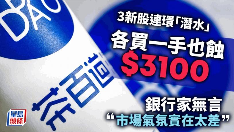 根據最新股價表現計算,若持有一手200股茶百道至今,賬面蝕約1,180元;天津建發一手2000股則蝕1,800元;連同出門問問一手微蝕120元;換言之,上述3股各只抽中一手的話,賬面也要累輸3,100元。