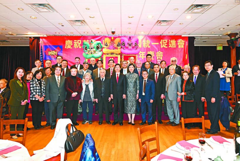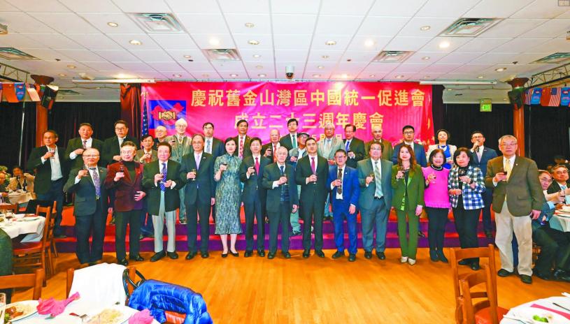 舊金山灣區中國統一促進會理事長池洪湖、副理事長雷振澤、黃華璽、林延奇、劉源凱、雷華欽;會長李國宏、第一副會長黃楚文、第二副會長麥永康、副會長伍柱偉、池德智;榮譽會長吳國寶、伍柱鈞、陸森茂、黃洪炎、陳國慶、何偉明、關家澄;促統論壇社長關信民、副社長黃健賢出席聯歡,筵開64席,嘉賓雲集,歡樂滿堂。