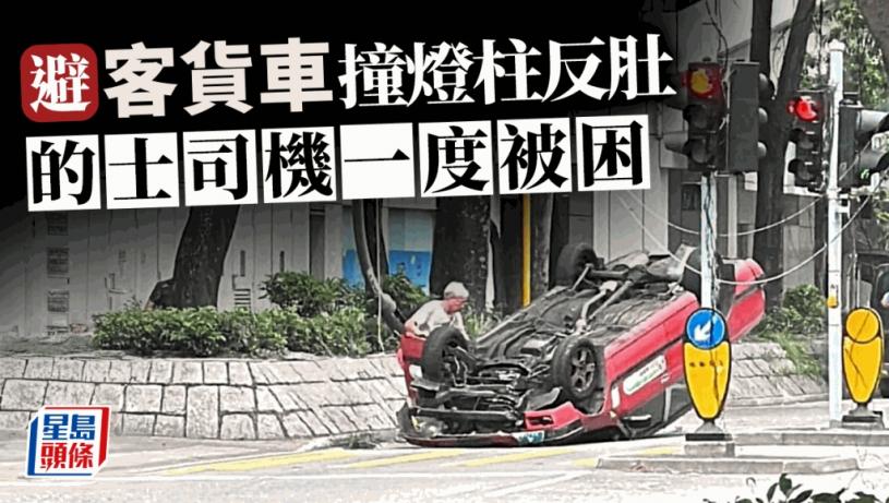 大埔安邦路大埔廣場,今(18日)早上約8時,一部的士駛至宜興閣對出,疑失控撞燈柱,的士四輪朝天反肚橫亘路中,車頭撞毀,車尾廂雜物傾倒在地。姓蘇76歲的士司機被困車內,途人報警求助,消防到場前,蘇已離開車廂,他仍然清醒,在場接受治療後拒絕送院。有人向警方表示誤將油門當剎車掣肇禍,警方正調查意外原因。