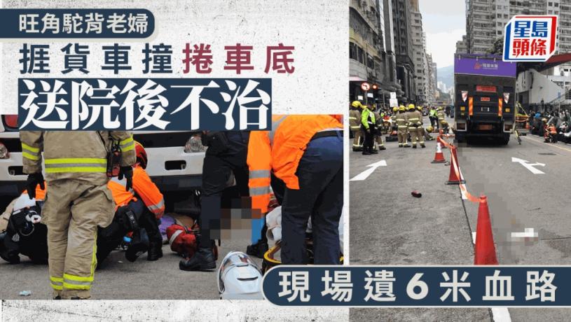 旺角發生嚴重車禍。今日(20日)下午4時許,一輛貨車沿洗衣街行駛,至山東街交界時,撞到一名正在過馬路的八旬老婦。老婦被捲入車底後,再被拖行大約10米,浴血重創,奄奄一息。救援人員趕到現場,災難應變救援隊亦奉召到場,消防用工具嘗試營救老婦,大約30分鐘將她救出,再由救護車送往伊利沙伯醫院搶救,延至傍晚6時05分,最終不治。