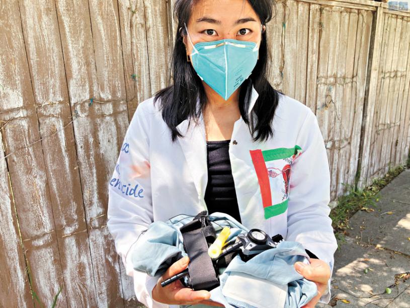 陳和其他三名志願醫務人員接受《KFF健康新聞》採訪,描述了在由帳篷搭建的臨時診所裡,治療傷口流血、頭部受傷和疑似骨折的抗議者。帳篷由醫生、護士、醫科學生、急救人員、以及沒有受過正規醫療訓練的志工輪流日夜值班。三人在警方5月2日掃蕩營地時身處現場,稱有時帳篷外不斷升溫的暴力事件,使受傷者無法被送上救護車,傷者唯有步行前往附近醫院,或被抬出抗議活動的邊界外送往急診室。