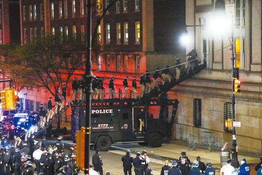 市長讚揚警員在哥大清場行動中專業克制。Bing Guan/紐約時報