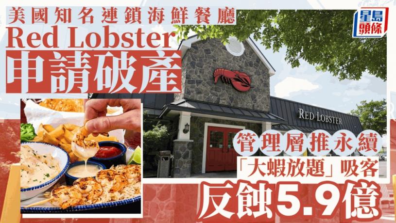在北美洲有超過550家分店的美國知名連鎖海鮮餐廳「紅龍蝦」(Red Lobster)19日申請破產保護。這間餐廳原本就負債累累,去年管理層為了吸引更多客人,竟將頗受歡迎「大蝦任食」由限時促銷改為永久促銷,導致負債雪上加霜,單是在去年就虧損了7,600萬美元(約5.9億港元)。