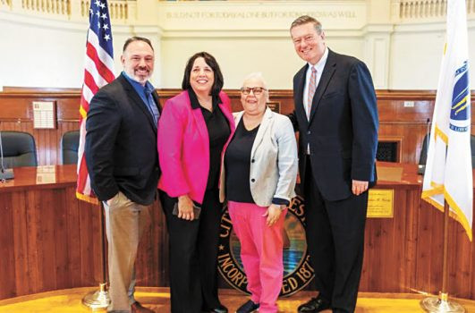 北岸基督教青年會主席兼首席執行官克里斯托弗·洛瓦斯科(Christopher Lovasco)、副州長德里斯科爾,眾議員費蘭特和秘書長奧古斯都現場合影。州政府供圖