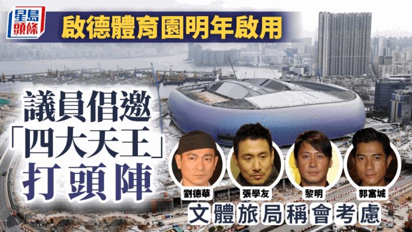 啟德體育園將於明年上半年啟用,將舉辦香港國際七人欖球賽等活動。立法會議員周文港建議能否在啟德體育園開幕時,邀請不同年代的香港歌手,特別是「四大天王」表演。署理文化體育及旅遊局局長劉震表示,當局會考慮此方向,希望開幕時會有一系列活動慶祝,此建議亦是考慮之列。
