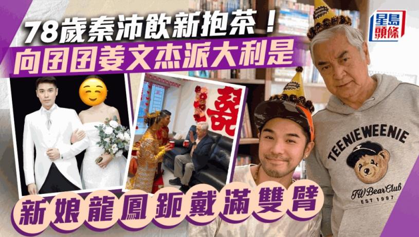 78歲秦沛(Paul哥)最近家中喜事連連,細女姜麗文(Lesley)與老公Pakho於2022年在美國洛杉磯完婚,上月底終披上嫁衣在港補擺酒,飲完這杯「女婿茶」不足一個月,前日(20日)輪到大仔姜文杰(Benji)與太太李泳淇(Rain)舉行婚禮。