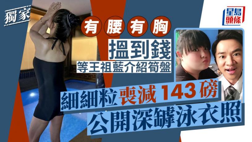 下周三踏入39歲的陳嘉佳(細細粒)高峰期體重達286磅,擁40G「大騎樓」之餘,更孭住超過43吋的巨型水桶腰,長期擋住視線,企直永遠望唔到腳趾,自己知自己事,多年來都冇勇氣着泳衣。瞓身激減10個月,厚切細細粒終變薄切,更於牛一前夕心血來潮影了一輯泳衣相,相中細細粒終於見返條腰,開始減肥後首先瘦的雙腿更加纖幼。細細粒最新體重143磅,更開心自爆三圍36E、29、36,上圍仲Keep到,恭喜晒。採訪:方騫平